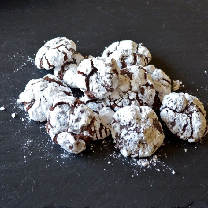 If you’ve never had the pleasure of biting into one of these, you are in for a treat. Growing up, a deli by my house used to make chocolate crinkle cookies just like these, and I LOVED them! Isn’t it so funny how certain foods from your childhood just stick into your mind like that? Imagine biting into a fudgy brownie, but it was bite sized and covered in powdered sugar. Aaaaand that it was a cookie. That’s pretty much the experience here.
