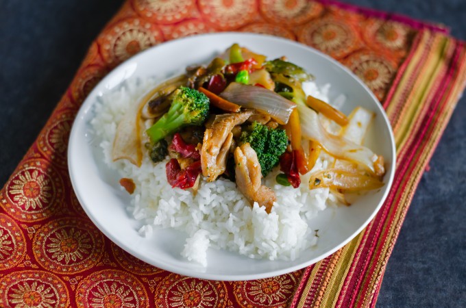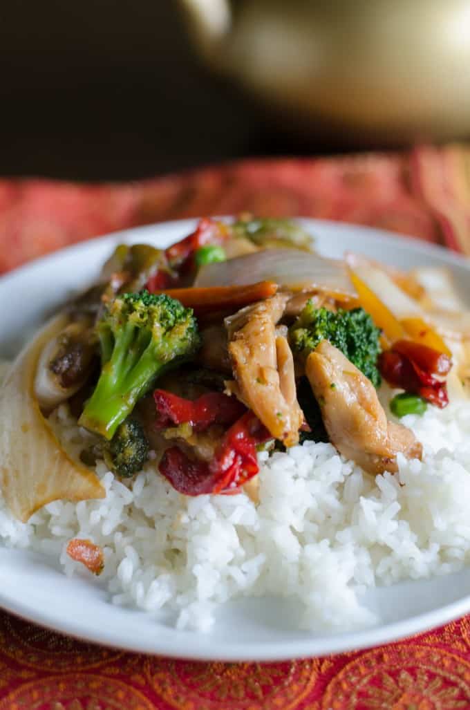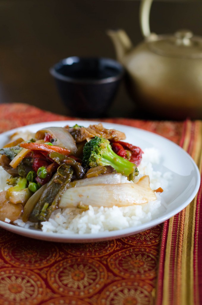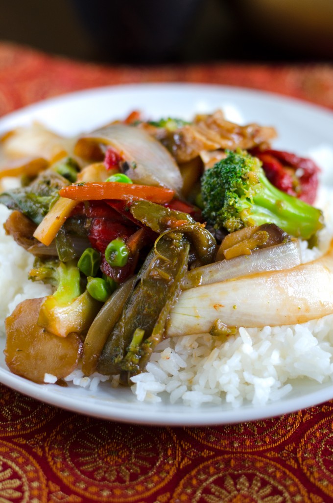 - Assorted vegetables suggestions: onions, garlic, broccoli, snap peas, water chestnuts, carrots, peas, bell pepper, squash, etc.