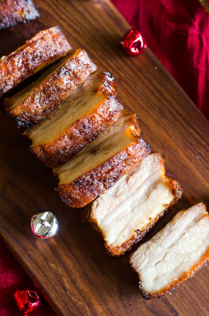 This Crispy Pork Belly recipe is marinated in Asian flavors, then roasted with a salt crust for crispy skin and tender meat. No scoring required!