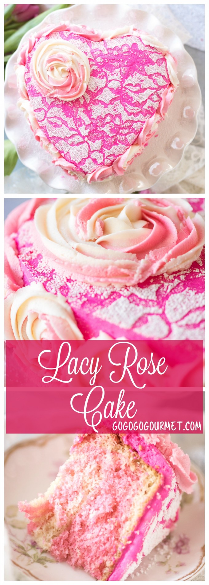 I used [easyazon_link identifier=”B001CG9YDA” locale=”US” tag=”gogogogo03-20″]Rose gel coloring[/easyazon_link]g to achieve the deep pink, then the [easyazon_link identifier=”B0000CFMU7″ locale=”US” tag=”gogogogo03-20″]Pink coloring[/easyazon_link] for the light pink in the rosettes. I used about half of the recipe of frosting for the deep pink coloring all over the cake, then 1/4 was left white and the remaining was colored light pink.
