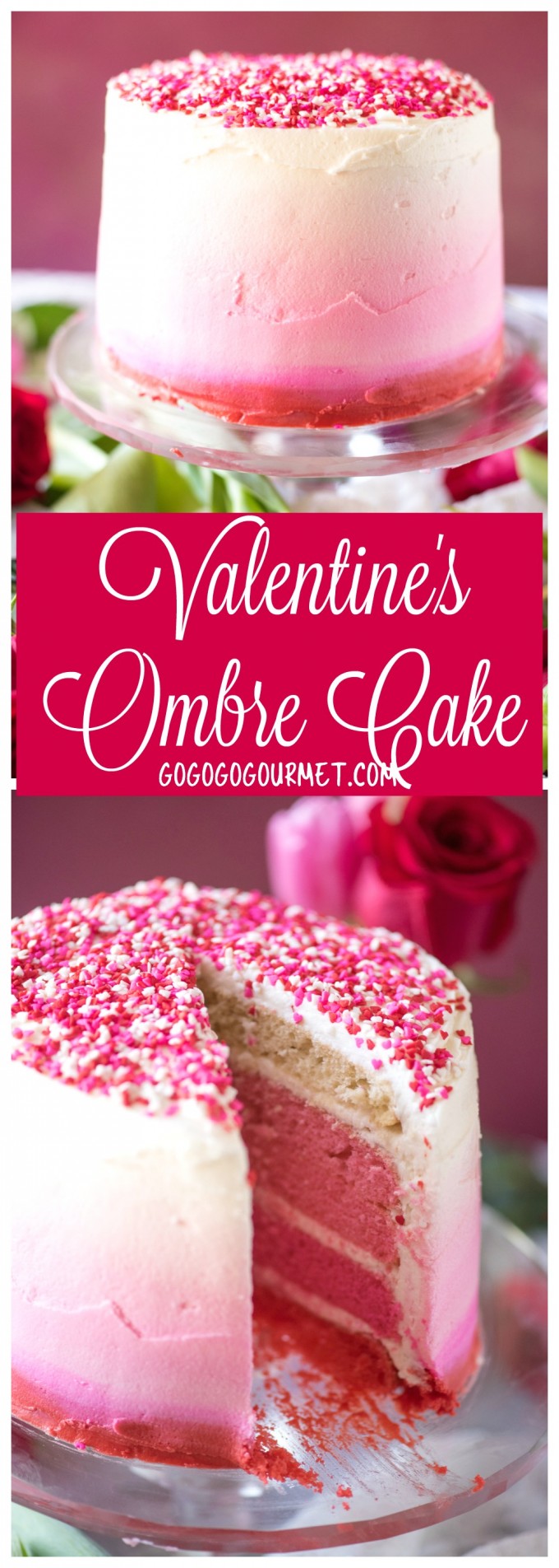 I did a version of this cake for my mom’s birthday last year and she died over it. I figured it was worth doing a version for Valentine’s Day, because the cake is seriously, beautifully, impressive but its easy. You really can’t “screw it up.” I use my favorite to do this, and tint four of the layers deepening shades- starting with light pink, to pink, to dark pink, to red. The top layer is white so you can add a tablecloth linens to have a much cleaner and elegant decoration so the cake can stand up.
