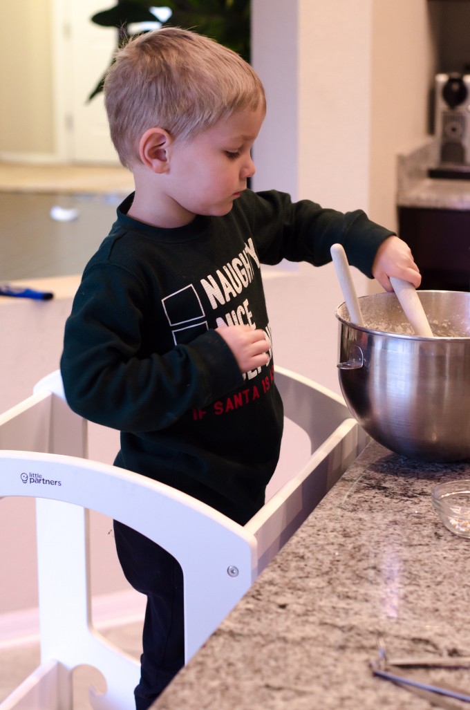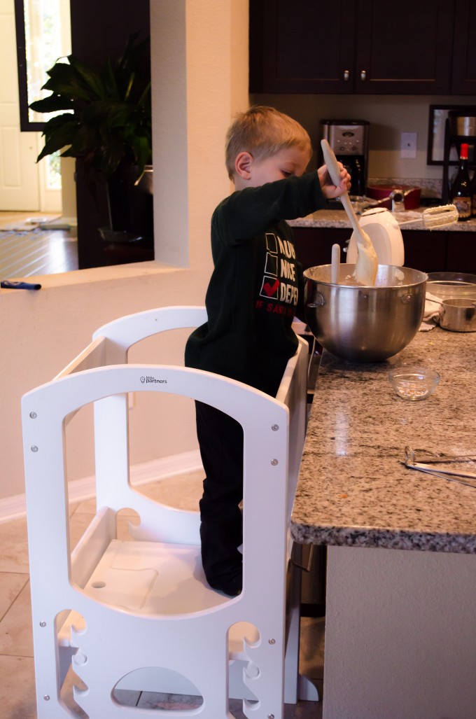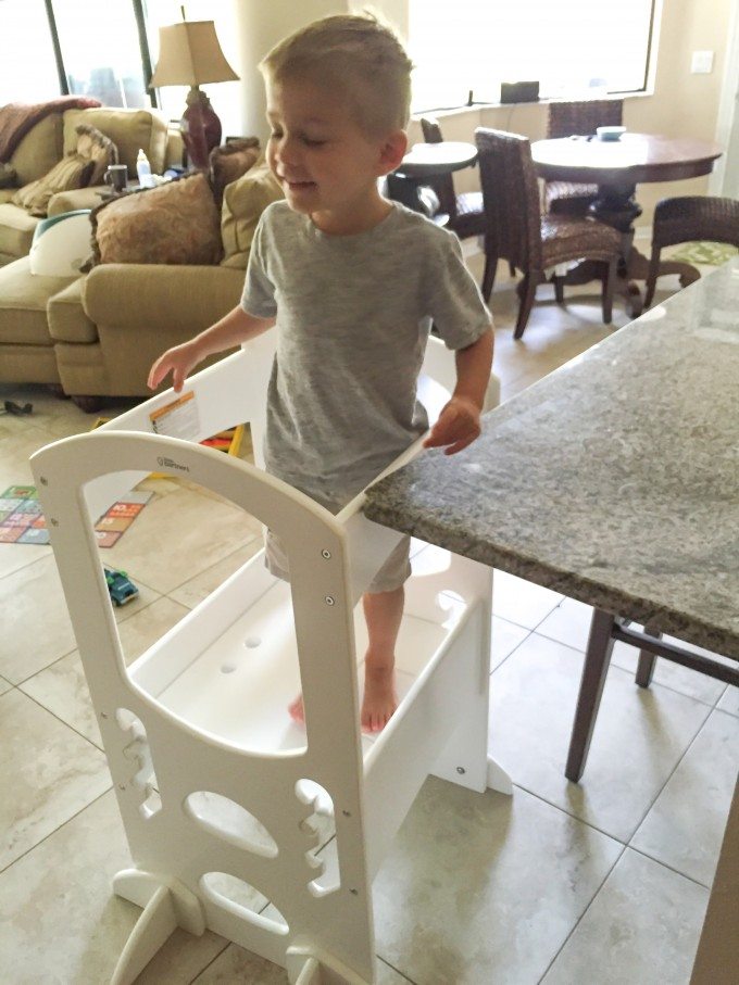I was celebrating my friend’s daughter second birthday, when I saw this stand in her kitchen. I asked her what it was, and she explained it was called a “learning tower,” and it was a safer way to have her daughter in the kitchen with her. Jonathan was just getting to the point where he ALWAYS wanted to be in the kitchen and see what I was doing- which usually meant he was clamoring for me to pick him up and hold him (Please refer to my logo above for a picture of what that was like).