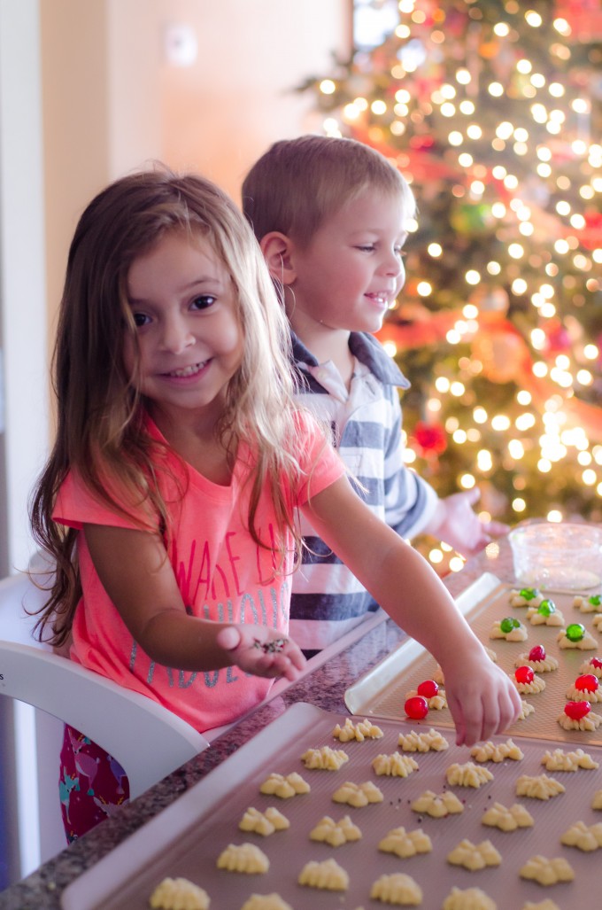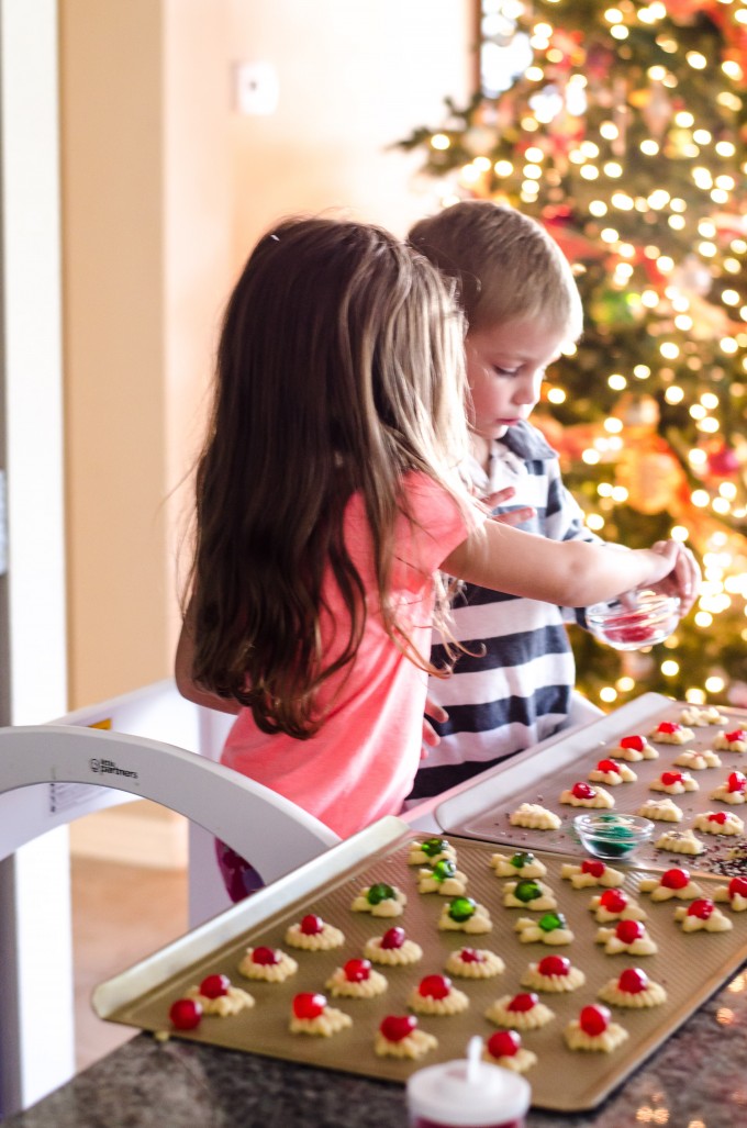 Jonathan had a friend over a few days ago, and we decided to let the kids make (well, decorate) a batch of spritz cookies. I can safely say that The Learning Tower safely fits a 3.5 year old and a 4 year old. Are they not the freaking cutest?