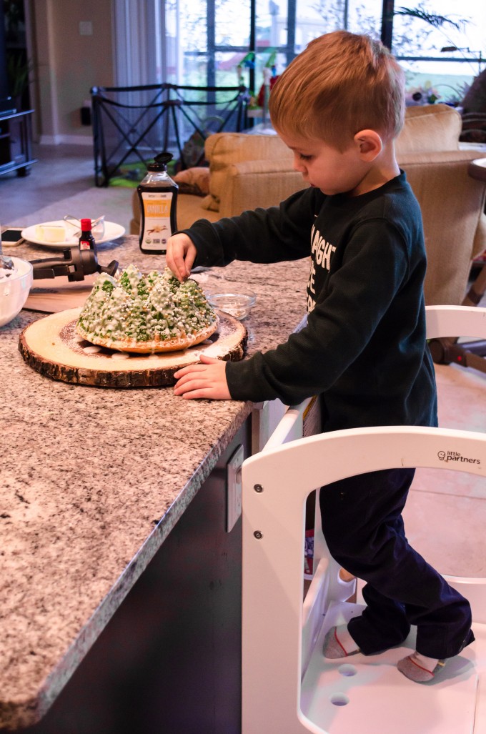 Jonathan still really likes to help me in the kitchen, which is great. The last few months have been a struggle for me in finding a good “work/mom/wife” balance. Work seems to be creeping in more and more, and slowly seeping into the time when my boys are awake, rather than me working furiously at 5 am, during nap time and long after everyone else has gone to bed. I have been feeling tremendously guilty about it lately, so it’s so nice to be able to include him in things, like putting sprinkles on a cake, pouring glaze, or (his personal favorite) sprinkling cheese.