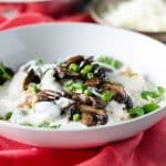 All I have to say here is that this is a great weeknight dinner- uses frozen ravioli and rotisserie chicken (or any other kind of leftover chicken you may have lying around, I actually used my Grilled Lemon Pepper Chicken), frozen peas, fresh mushrooms and my Four Cheese Sauce to make this dinner that is ready in under 30 minutes. I was going to just include this in the Four Cheese Sauce post, but I honestly felt the dish was too good not to have its moment in the sun. So… here we are.