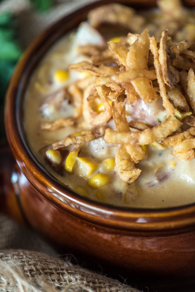 - Ladle into bowls and serve topped with crispy onions (optional)