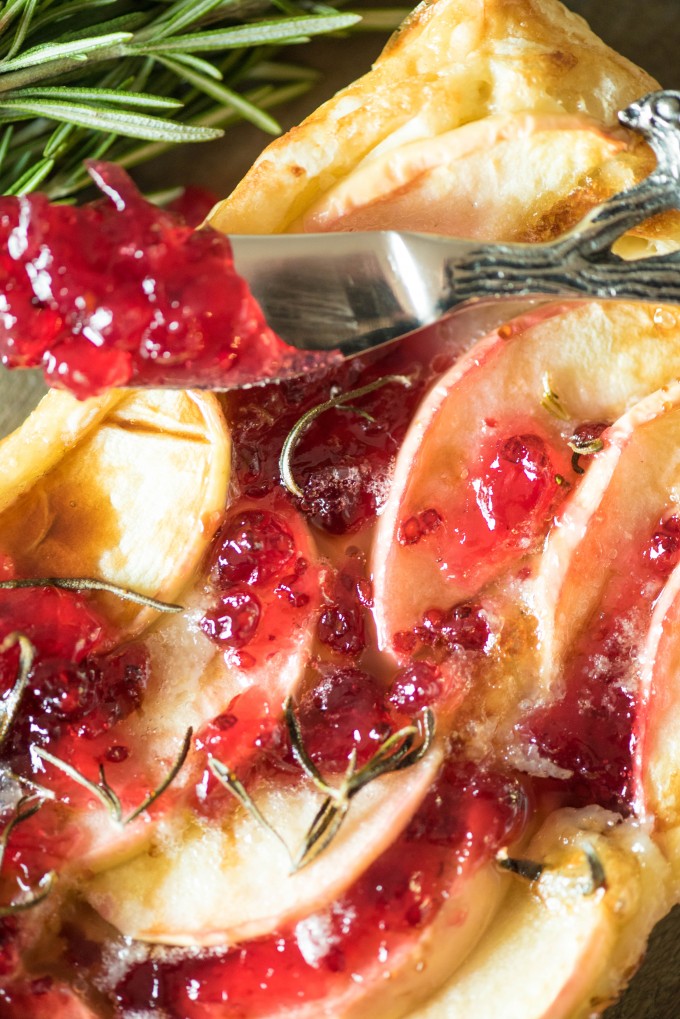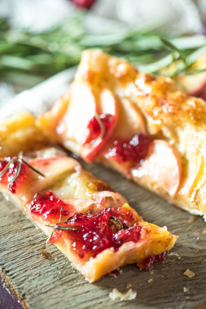 The holidays are coming, and this Red Currant Apple Brie Puff Pastry Tart is enhanced with the flavors of rosemary and balsamic, for an easy appetizer perfect for cocktail parties and before holiday dinners.