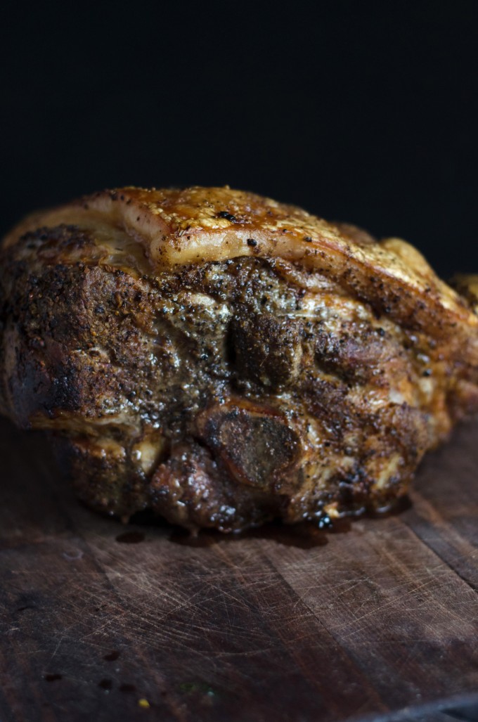 - One 6- to 7-pound bone-in pork shoulder, skin removed and thick layer of fat scored