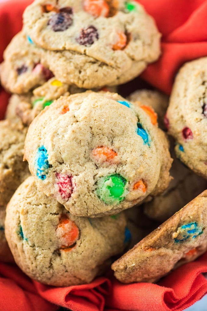 I was in the grocery store the other day, and I saw M&M cookies in the bakery. I immediately thought, “Jeez, when was the last time I had a homemade M&M cookie? Can’t even remember. Do I need to buy these? Oh, they’re crispy. Ew. Forget it. I’ll do it myself.”